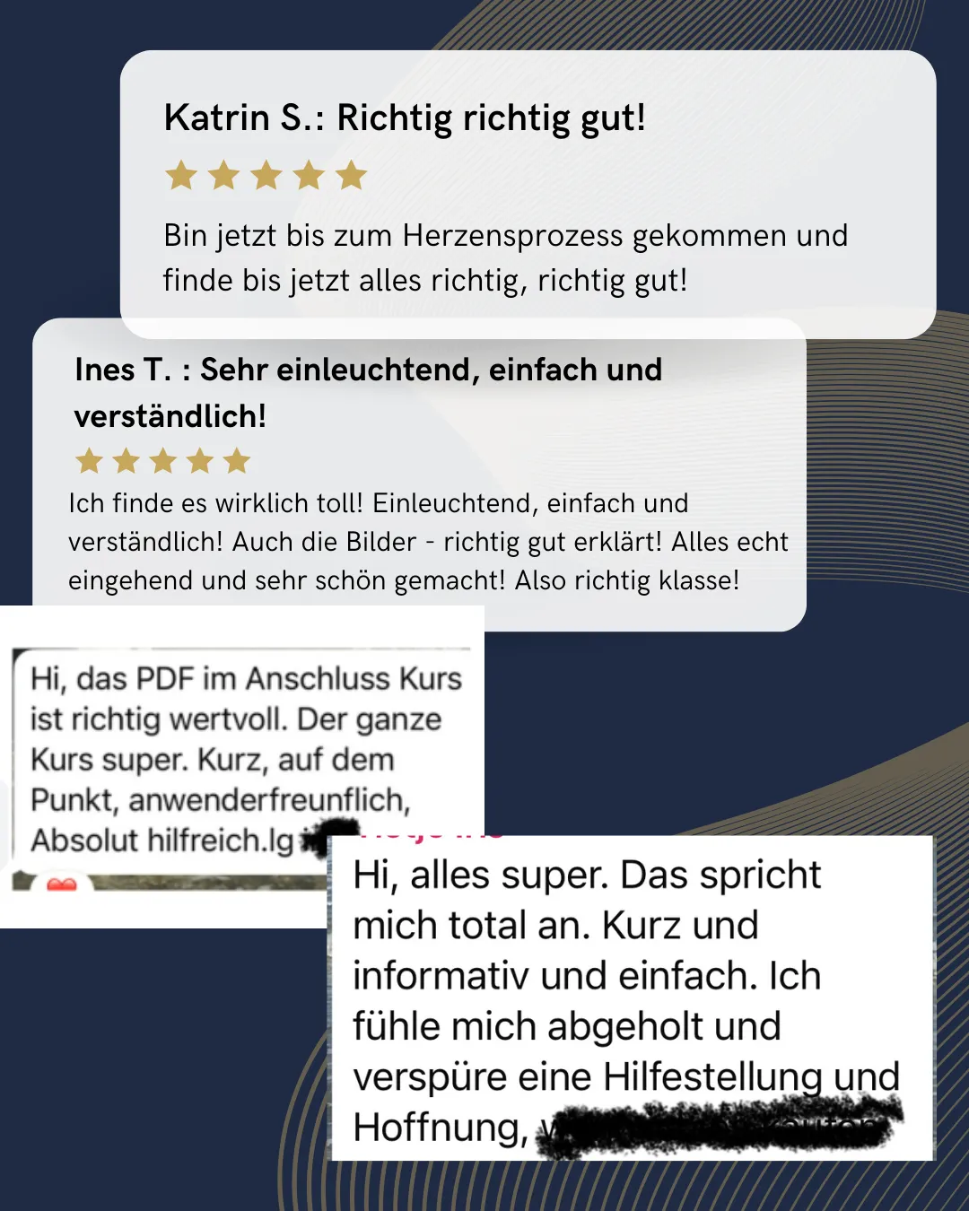 Viele meiner Teilnehmerinnen haben schon Coachings, Bücher oder Podcasts hinter sich. Der Unterschied hier ist: Du arbeitest tief, strukturiert und praxisnah. Die Inhalte sind so aufbereitet, dass sie nicht nur Wissen vermitteln, sondern echte Veränderung ermöglichen – mit Klarheit, Tiefe und viel Herz.